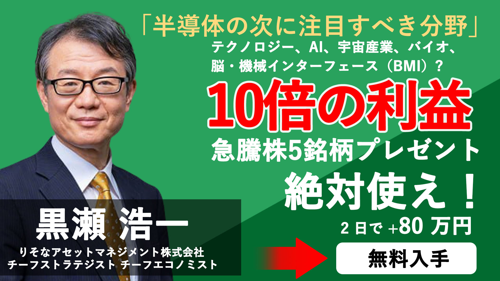 私のファンや友人に恩返しをするために、今日は株式市場で儲けるための「事実」と「コツ」を紹介しよう! および! 私が厳選した、予想リターン70%〜150%の超優良銘柄リストを無料でプレゼント! 今すぐ下のボタンをクリックし、私のLINEを追加してください!